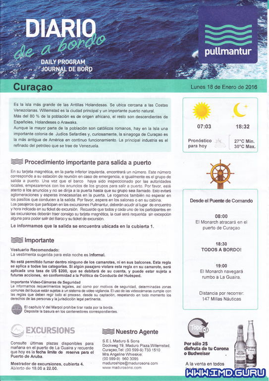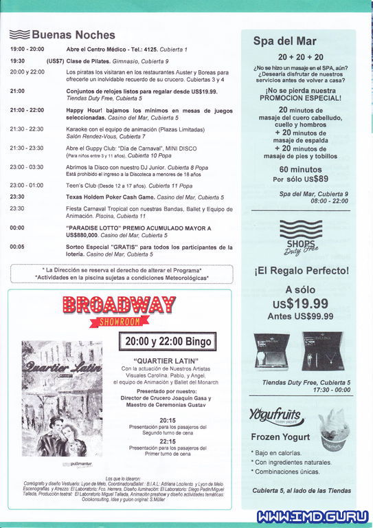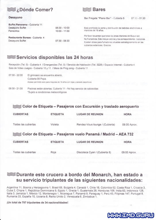 Cada día nos dejaban el día de a bordo del día siguiente para saber que había de espectáculos, comida, hora de llegada y salida del puerto, horarios, etc, etc.