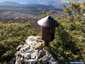 Seguimos a Garimendi (1141 m) donde no hay nada y cuesta ver la cima, para luego encontrarnos con el recuerdo a los carboneros con su replica muy bien hecha, continuamos por un trozo de bosque encancantando mara villa de Urbasa y pasamos al acantilado donde llegamos a Kerezmendi (1118 m) donde hay dos buzones uno de ellos de difícil acceso, volvemos a pista para alcanzar Larraitza (1055 m) cuyo buzón está bastante estropeado, una pena y ya volviendo justo antes de bajar de nuevo al monasterio llegamos a Azantza (1085 m) cuyo buzón está incrustado en la roca.