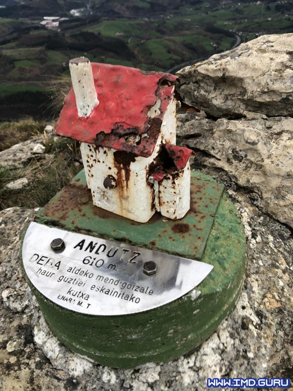 Volvemos por el sendero y seguimos hasta la cima de Andutz (vértice geodésico y primer buzón) y luego cruz y segundo buzón) para tomar el sendero que baja hasta el polígono justo detrás de donde hemos aparcado.