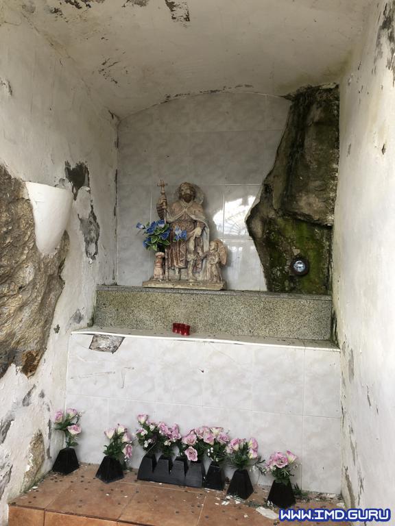 Para volver bajamos por la cruz por el sendero hasta dar con el merendero de cemento cubierto y al lado una pequeña ermita. Seguimos bajando para tomar el desvío a la derecha que va a dar a un sendero paralelo a la cantera, donde iremos bajando a ratos en zigzag hasta dar con el bosque.