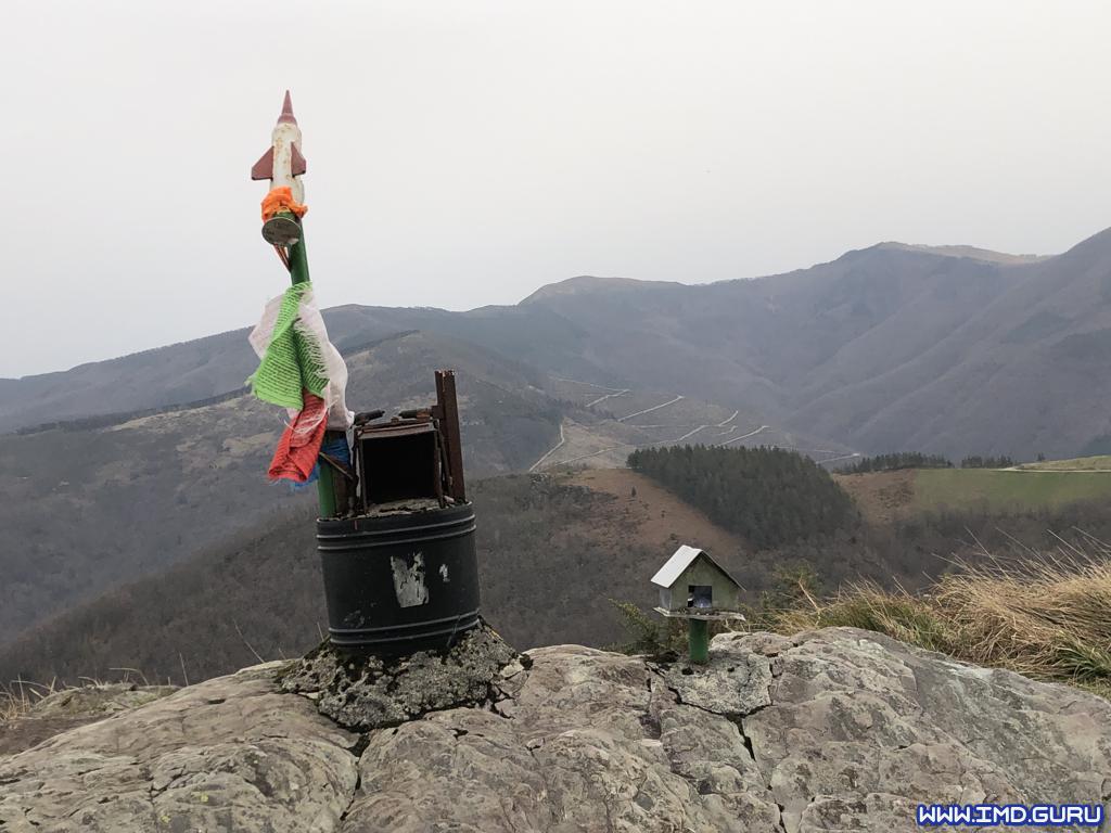 En el cruce seguimos recto por la pista ancha hasta dar con las antenas y la cima de Larre, para volver seguimos el sendero hacia la ermita y luego hasta dar de nuevo con la pista casi ya en el cruce. La baja está muy marcara aunque hay varios senderos, que se puede tomar el que mejor nos convenga.