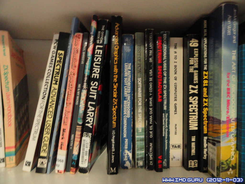 Destacar las colecciones de aventuras Level 9 casi completa, los libros Step by Step de Spectrum y Commodore completos y la mitad de BBC Micro, los libros de la editorial Usborne (Plesa y Anaya en su versión española).